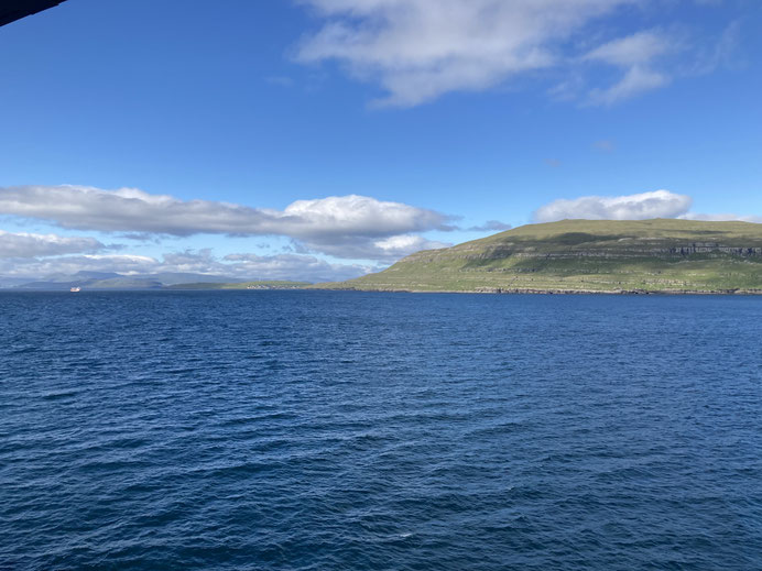 Der kurze Zwischenstopp im Hafen von Torshavn ist das Highlight des Tages. Hier verlassen diejenigen das Schiff, die ein paar Tage auf den Färöer-Inseln verbringen wollen, bevor sie mit der nächsten Fähre weiter nach Island reisen. Wir haben leider nicht genug Uraubstage um uns diesen Abstecher erlauben zu können. Dafür genießen wir die Einfahrt in den Hafen und die zum Teil skurrilen Fahrzeuge, die nun auf die Fähre fahren.